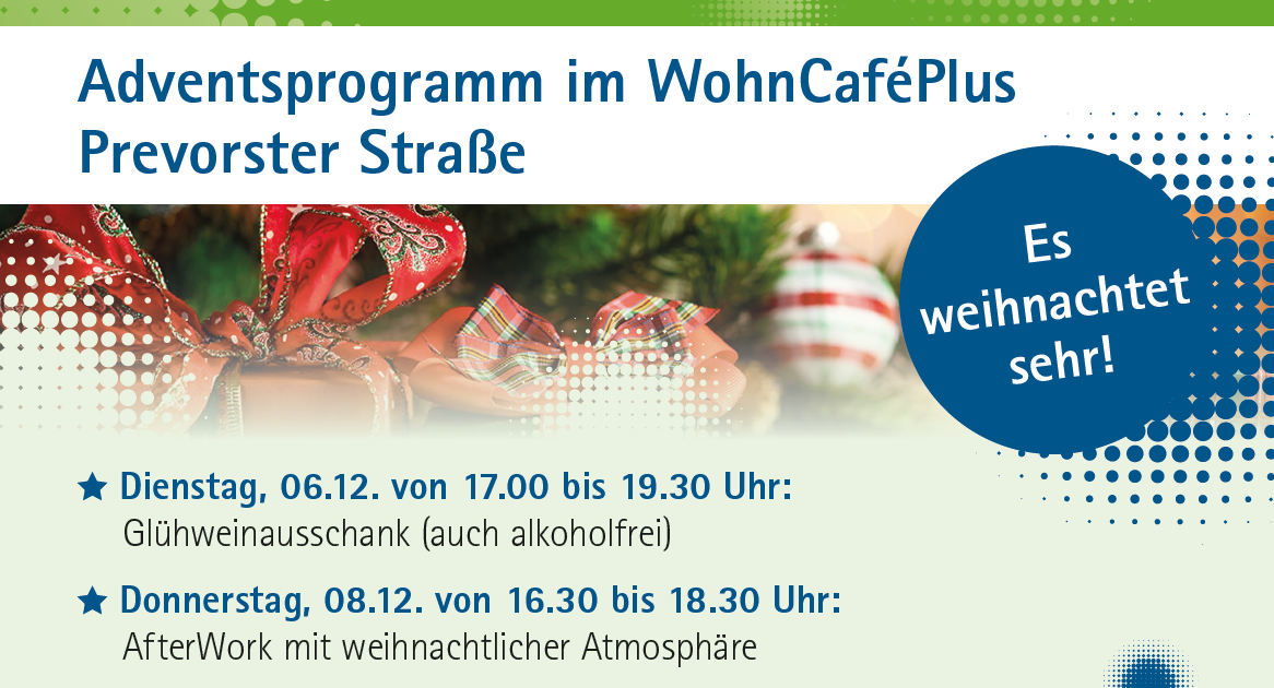 Im Dezember schenkt das WohnCafé-Team der Else-Heydlauf-Stiftung jeden Dienstag zwischen 17:00 Uhr und 19:30 Uhr Glühwein und Punsch vor dem WohnCafé aus. Quartiersbewohner*innen und -besucher*innen sind herzlich willkommen! Die vollständige […]